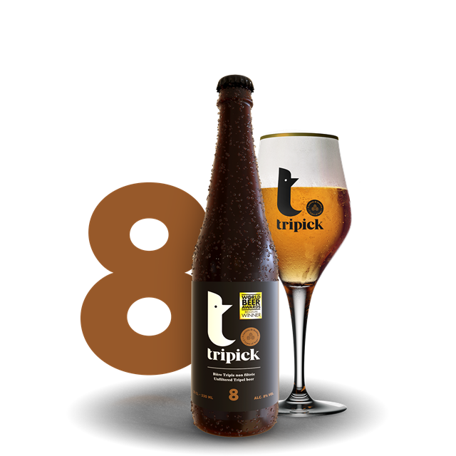 Tripick 8° est une bière blonde triple titrant à 8 degrés d'alcool et refermentée en bouteille. Le caractère subtil de cette bière s'exprime à travers son côté houblonné, avec une amertume présente mais habilement contrôlée. Les arômes sont accentués par l'utilisation d'un houblon noble aux notes épicées, pour une expérience gustative hors du commun.